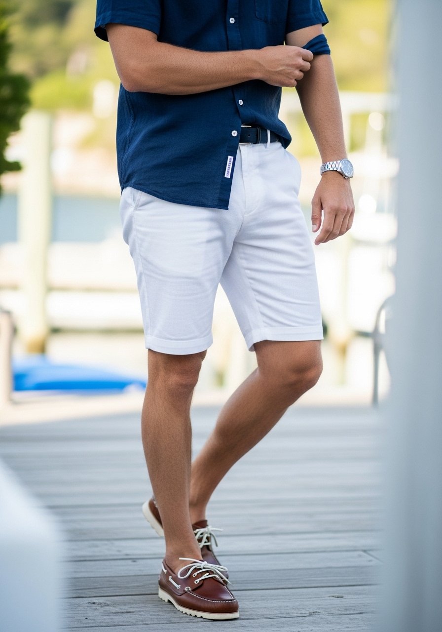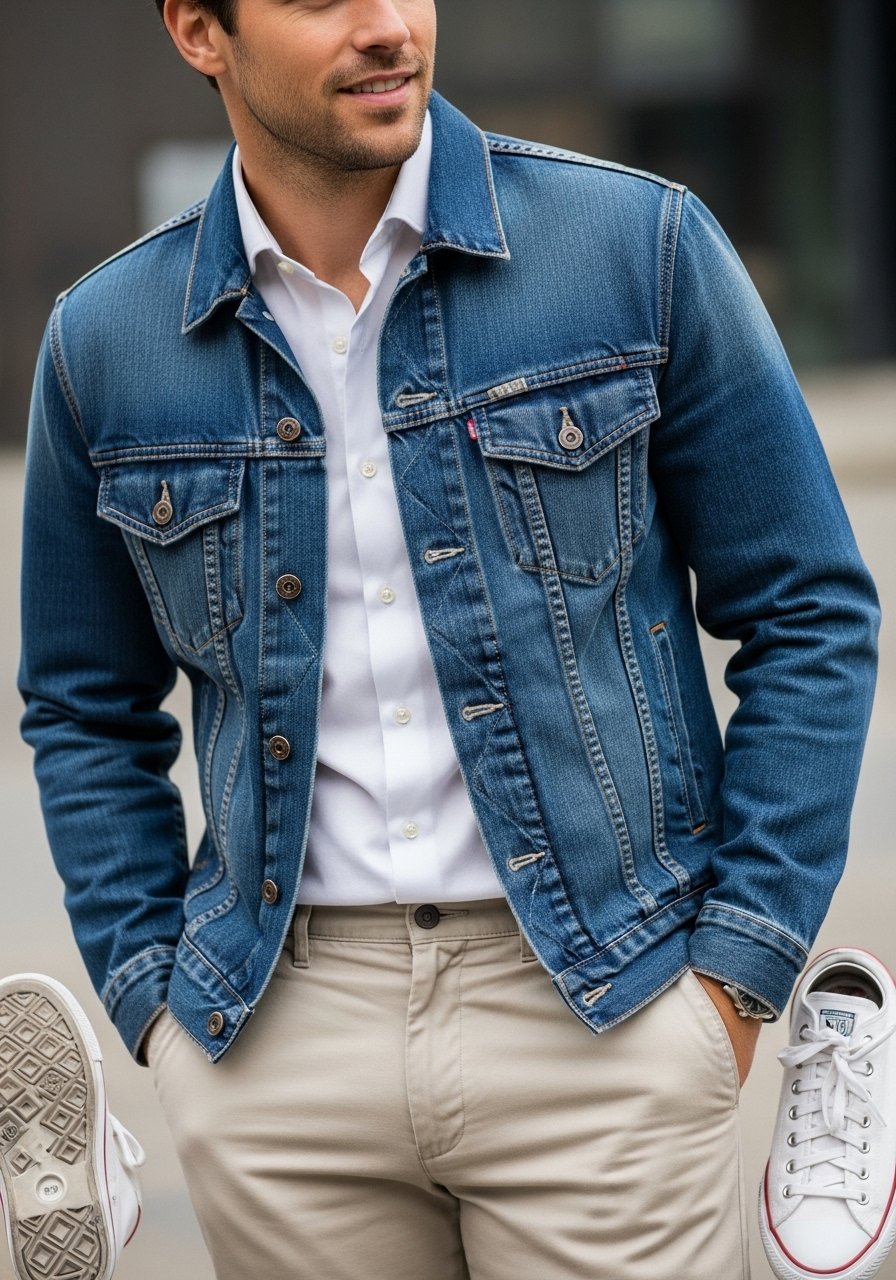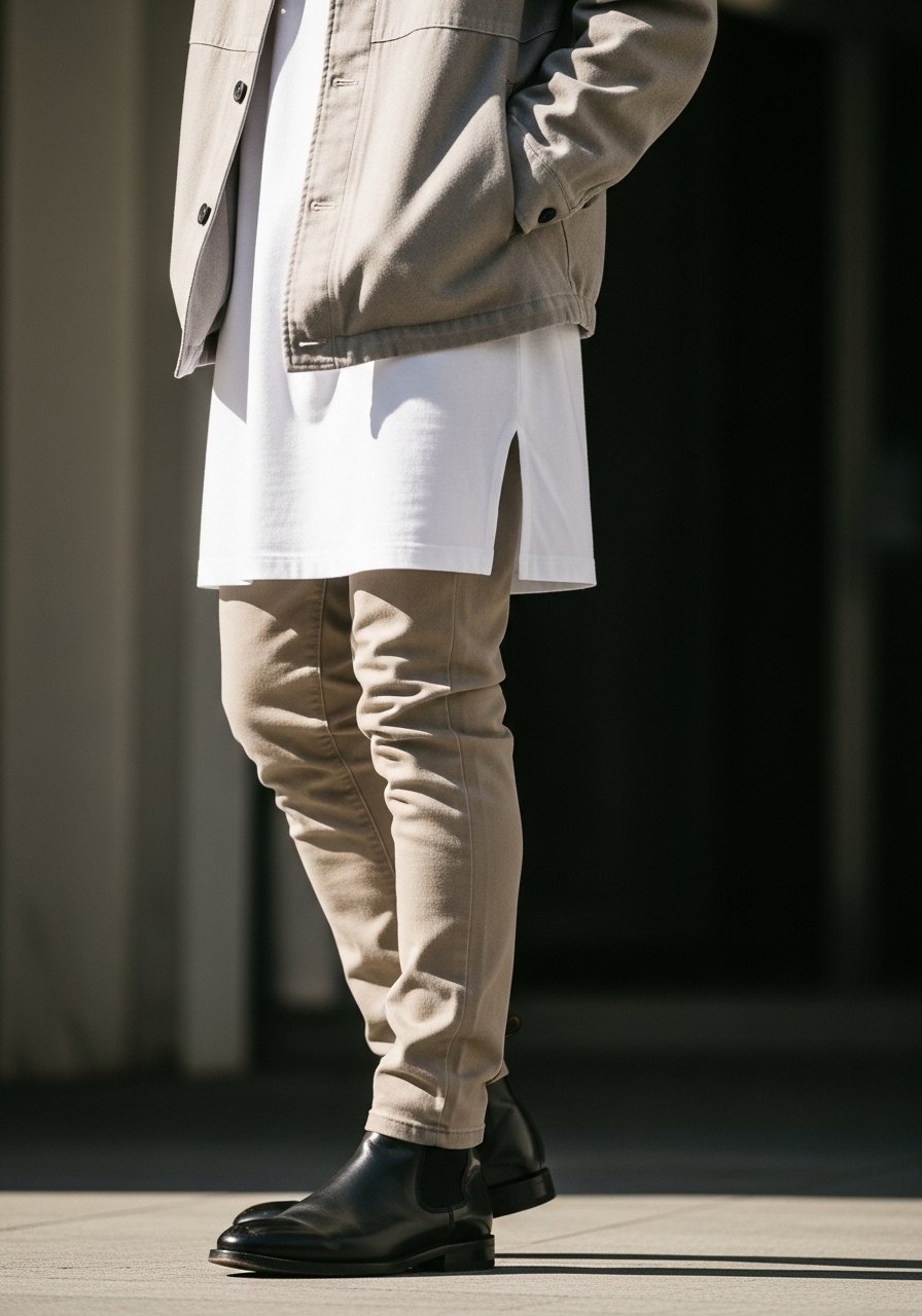 I anchor the outfit with clean white sneakers and a leather belt that matches the shoe tone. Keep accessories simple—a watch and maybe a subtle chain.