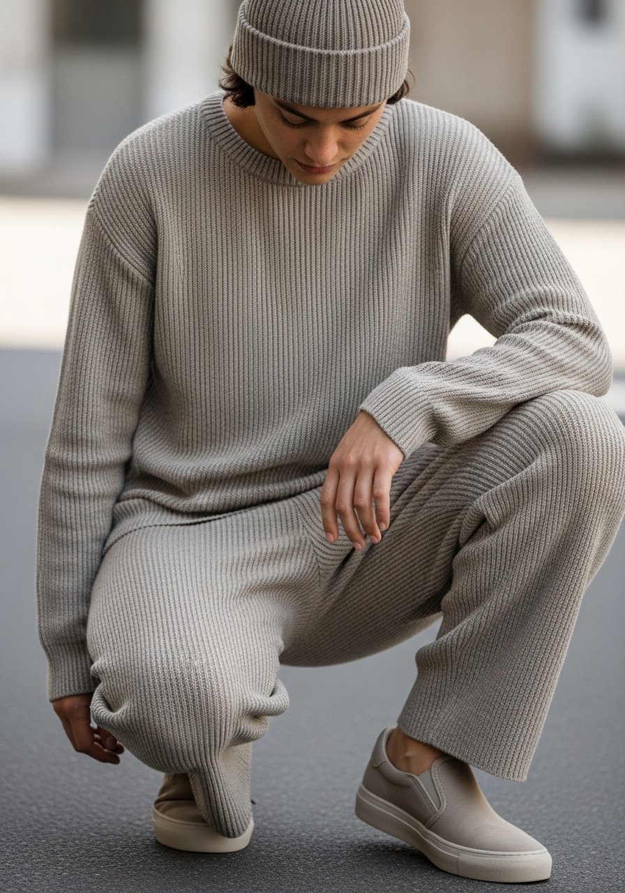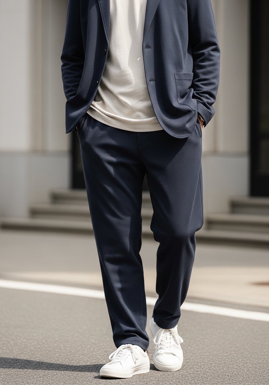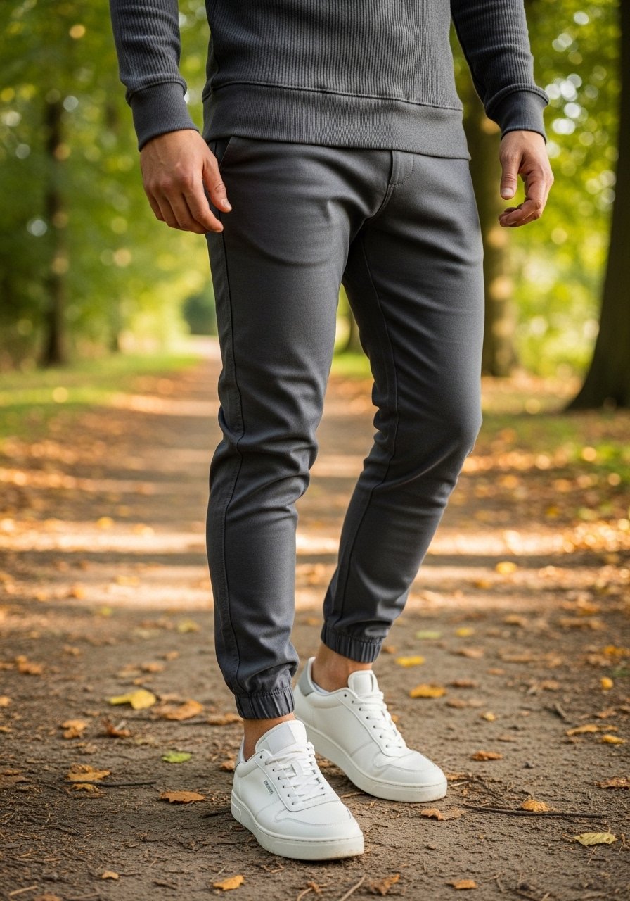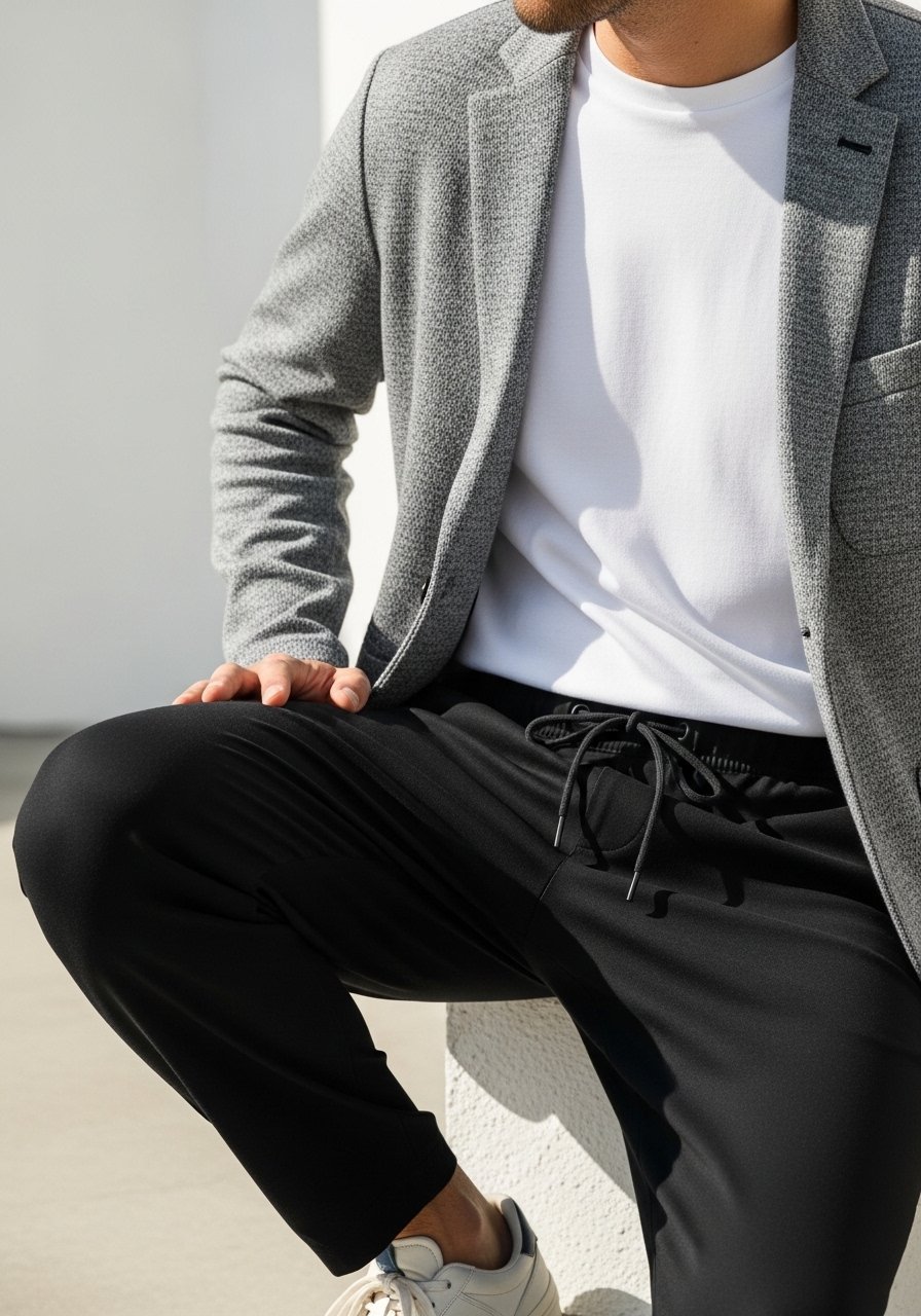 Now I choose fitted sweats and tapered joggers for a balanced silhouette.