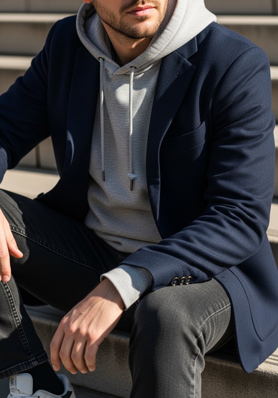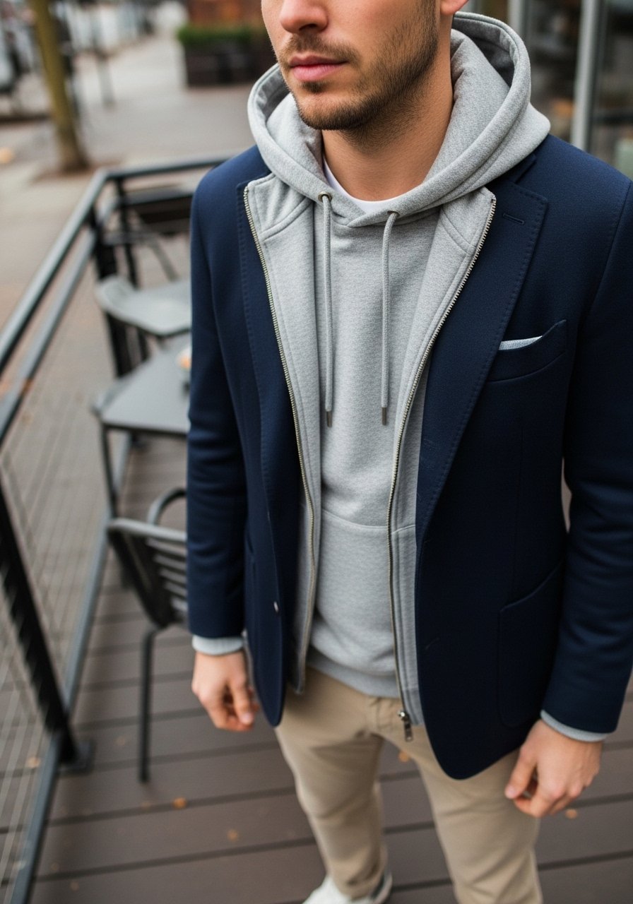 I wear a neat hoodie under an unstructured blazer when I want casual comfort with a hint of tailoring. It feels modern and surprisingly approachable.