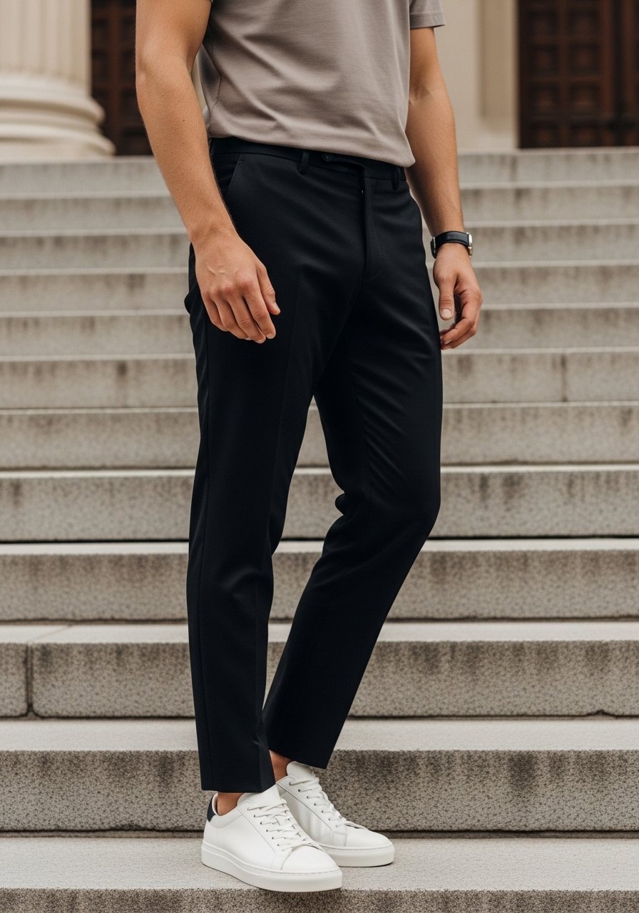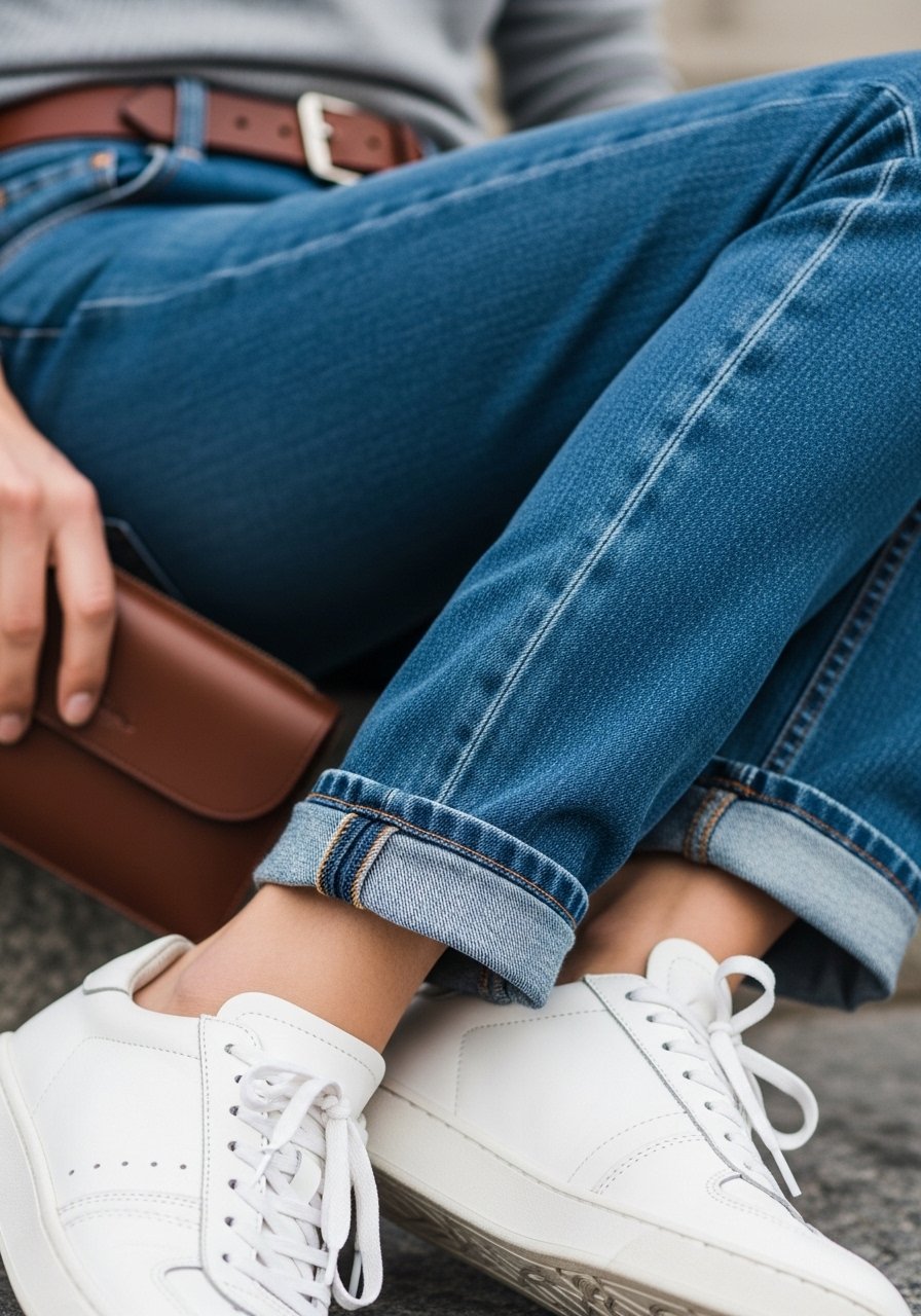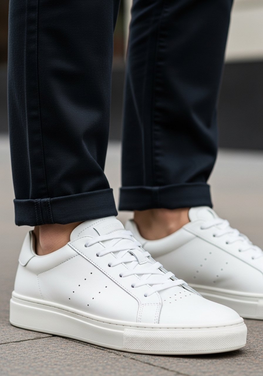 One insight I use: sneakers pair best with a slightly cropped hem or tiny cuff. The small mistake I avoid is wearing overly athletic trainers—the sole or logo pulls the outfit into casual territory.