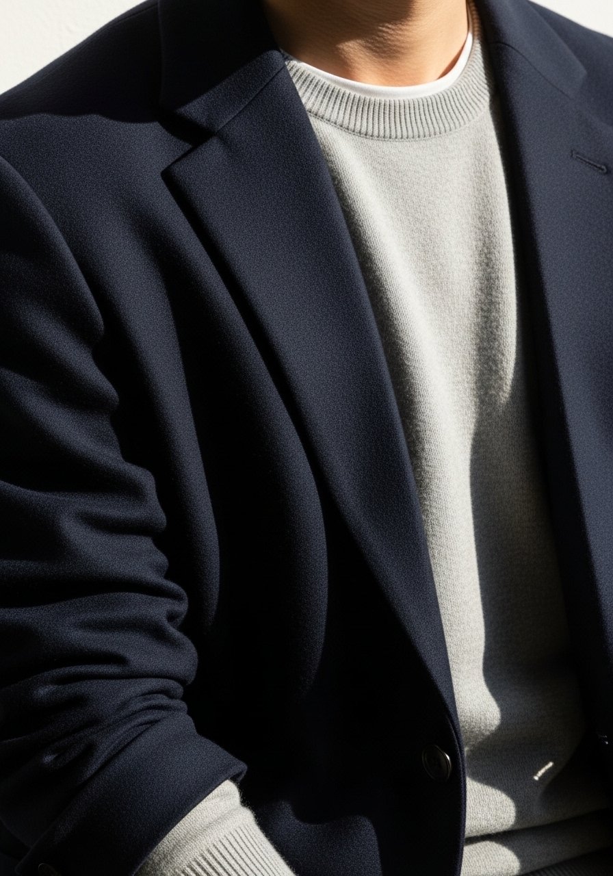 I pick either the merino crew or the unstructured blazer—not both at full structure. The sweater keeps things relaxed; the blazer adds polish while keeping shoulders soft. What changes visually is the outfit’s formality: sweater = casual-leaning, blazer = smart-leaning.