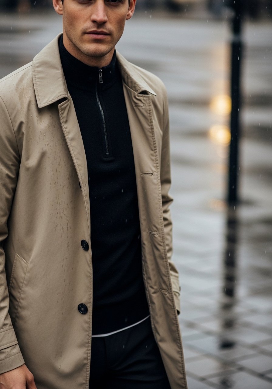 11. Lightweight Trench Over a Mock-Neck for Rainy Commutes