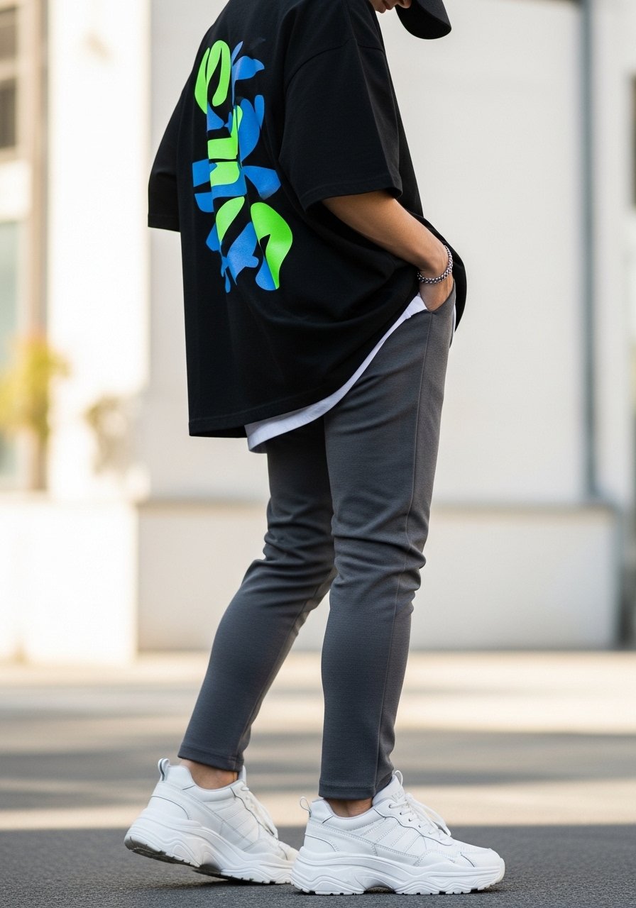 Most people miss how much length changes proportion. Small mistake: wearing an oversized tee that hides your waist and makes everything look shapeless.